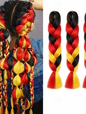 Treccine jumbo nei colori della bandiera tedesca - Extension per capelli sintetici da 24" (61 cm) nere, rosse e gialle per eventi sportivi &trecce a bolle da festival