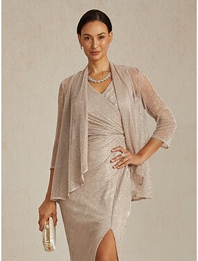 Per donna Top da sera Pieghettato Stratificato Metallico Tinta unica Elegante Romantico Matrimonio Manica 3/4 Festa serale Ospite di nozze Abbigliamento formale Marrone Estate Primavera Autunno