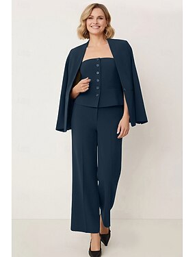 Per donna Abiti da 3 pezzi Formale Ospite di nozze Tessuto Elasticizzato Crepe Elasticizzato Elegante Manica Lunga Lunghezza al pavimento Risvolto a punta