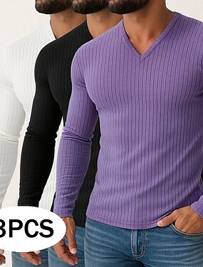 Per uomo Maglietta Canotta Muscolare Maglietta a Maglia a Coste Camicia a Maniche Lunghe Manica Lunga Scollo a V Primavera Autunno Inverno Semplice Striscia di Fossa Moda Designer Essenziale 3 pezzi