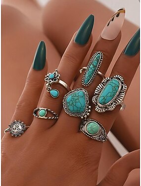 set di anelli turchesi da donna - set multi-pezzo di gioielli vintage in lega bohémien per le vacanze delle donne, le vacanze al mare e l'uso quotidiano