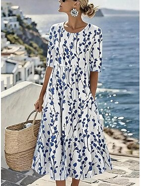 Per donna Abito Midi Abito a Tubino Vacanza Casual Boho Quotidiano Abito Estivo Abito Primaverile Vestibilità regolare Floreale Grafico Manica 3/4 Girocollo Blu Bianco Verde chiaro Rosso Estate