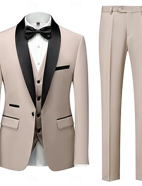 Uomo Smoking Abiti da festa Affari Matrimonio Beige Primavera, Autunno, Inverno, Estate Tuta Bavero sciallato Formale Tinta unita Vestibilità aderente 3 pezzi Monopetto a un bottone