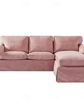 Divano a 3 posti Ektorp con fodera per chaise longue, fodera in velluto a coste trapuntato in tinta unita, resistente protezione antiscivolo per il soggiorno