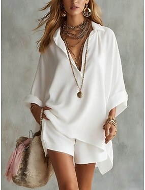 Per donna Camicia Estiva Camicia casual Camicia con Bottoni Blusa Bottoni Tinta unica Vacanza Quotidiano Elegante Manica Lunga Collo ripiegato Top Regolari Quotidiano Spiaggia Ferie Blu Rosa cipria