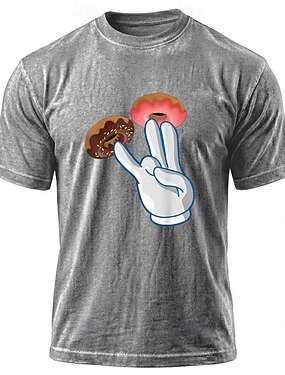 maglietta grafica divertente per adulti con ciambella e segno della mano, in misto cotone lavato, grigia, retrò, da uomo, unisex, streetwear, a maniche corte, abbigliamento, s m l xl xxl xxxl