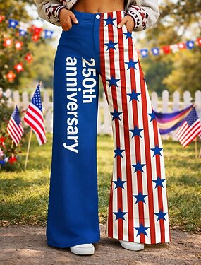 250° anniversario USA Retrò Vintage Anni '70 Pantaloni Pantaloni a gamba larga Hippie Disco Vita alta Costume Per donna Mascherata 4 Luglio Feste Giorno dell'Indipendenza Adulti Pantaloni