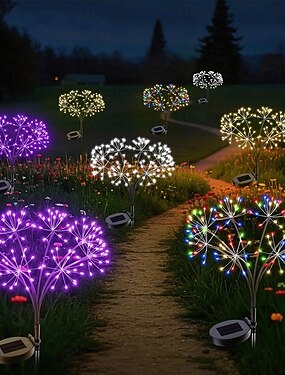 Luci da giardino all'aperto a forma di fuochi d'artificio solari per percorso 2x 1x luci LED a picchetto per decorazione paesaggistica di giardini e cortili 120LEDs Luce fatata per giardino strada