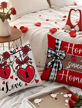 federa per cuscino con stampa a cuore per San Valentino, cuscino decorativo in lino per divano, soggiorno, perfetto per decorazioni natalizie per San Valentino, comodo cuscino da comodino e divano