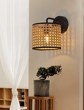 lampada da parete in rattan lightinthebox, lampada da parete vintage, lampada in vimini intrecciata a mano e27, lampade da parete in bambù per soggiorno, camera da letto, caffetteria, cucina,