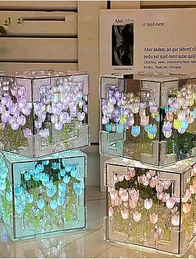 Fiori artificiali fai da te, tulipani, cubo, specchio, scatola, luce notturna, regalo per esposizione floreale per la festa della mamma, compleanni, decorazioni romantiche &ambiente domestico, kit di
