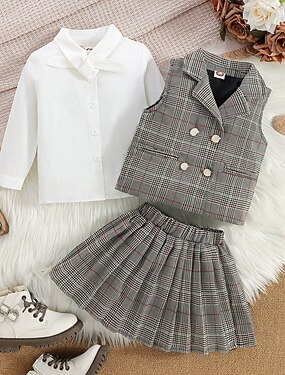 Ritorno a scuola Carnevale Ragazze 3D Pied-de-poule Camicia e gonna Manica Lunga Autunno Inverno Vintage Moda Bambino (1-4 anni) 1-5 anni A V Feste Streetwear Vestibilità comoda