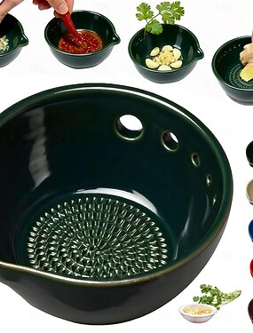 ciotola per erbe aromatiche con grattugia per aglio fatta a mano, ciotola per erbe aromatiche in ceramica 2 in 1 con 5 fori, ciotole multifunzionali per erbe aromatiche con grattugia per aglio