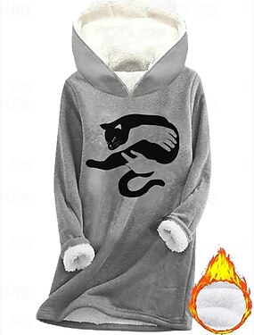 Per donna Felpa con cappuccio Grafico Gatto Caldo Casual Pile Sherpa Manica Lunga Con Cappuccio Top lunghi Streetwear Abbigliamento Quotidiano Casuale Stampato Foderato in pile Rosa scuro Blu Grigio