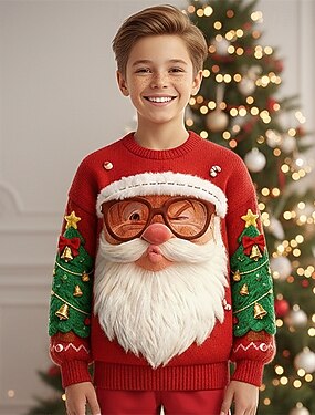 Natale Ragazzi 3D Cartoni animati Maglione di Natale brutto regalo di Natale Felpa Manica Lunga Stampa 3D Autunno Inverno Moda Festa Bambini 4-12 Anni Girocollo All'aperto Quotidiano Vestibilit