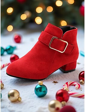 stivaletti rossi in pelle scamosciata da bambina con cinturino con fibbia - eleganti scarpe con tacco medio per le feste di Natale per bambini, abiti da festa