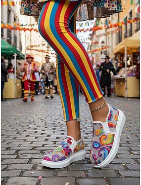 Per donna Scarpe da ginnastica Esterno Giornaliero Viaggi Mimetico pianta Colore a contrasto Piatto Punta tonda Per sport Informale Comoda Corsa Footing Pelle microbica Microfibra Banda elastica Nero