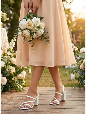 sandali da donna con tacco a blocco e cinturino alla caviglia, scarpe da sposa romantiche per matrimoni all'aperto in giardino