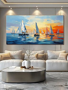 Pittura A Olio Fatta A Mano Su Tela Decorazione Della Parete Di Arte Moderna Barca A Vela Paesaggio Per La Decorazione Domestica Pittura Arrotolata Senza Cornice Non Allungata