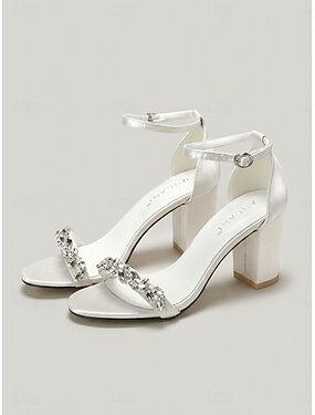 Sandali da donna bianchi con tacco a blocco e strass – eleganti sandali con cinturino alla caviglia e punta aperta, perfetti per i cocktail party. &eventi serali