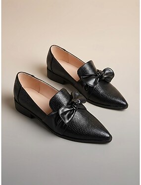 Mocassini penny a punta nera chic da donna – Eleganti slip-on in pelle a stampa rettile con fiocco decorativo per lavoro in ufficio abbigliamento professionale e commuting quotidiano