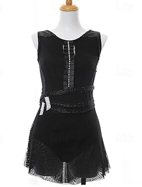 Abito da pattinaggio artistico Per donna Ragazze Pattinaggio sul ghiaccio Vestito Nero Patchwork Schiena aperta Rete Spandex Elasticizzato Allenamento Professionale Competizione Vestiti da