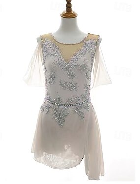 Abito da pattinaggio artistico Per donna Ragazze Pattinaggio sul ghiaccio Vestito Bianco Foro per il pollice Rete Alta elasticità Allenamento Competizione Vestiti da pattinaggio sul ghiaccio Classico