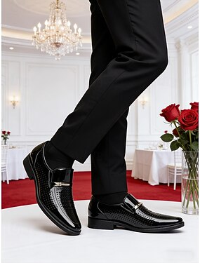 mocassini da uomo in similpelle nera verniciata, eleganti scarpe da sposa slip-on per sposi ed eventi formali
