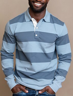 Per uomo Strisce orizzontali Polo da rugby Manica Lunga Magliette polo Camicie con Colletto Abbigliamento Sportivo Casual All'aperto Scuola Athleisure Stampa 3D Primavera Autunno Blu azzurro cielo