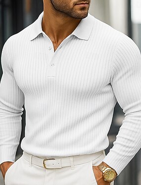 Per uomo Top a Maglia a Coste Testurizzato Streetwear Casuale Bavero Manica Lunga Essenziale Moderno Semplice Strisce verticali Bottoni Primavera Autunno Tutte le stagioni Vestibilità aderente Bianco