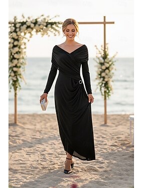 Tubino Colonna Lunghezza alla caviglia Vestito da Festa Abito da Cocktail Abito da invitata a nozze Abiti per invitati a matrimoni Elegante Manica Lunga Senza Spalle Matrimonio con Arricciato