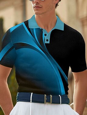 Per uomo Geometrico Magliette Polo a Nido d'Ape Manica Corta Magliette polo Camicie con Colletto Business Casual All'aperto Abbigliamento Quotidiano Athleisure Stampa 3D Bottoni Estate Blu / nero