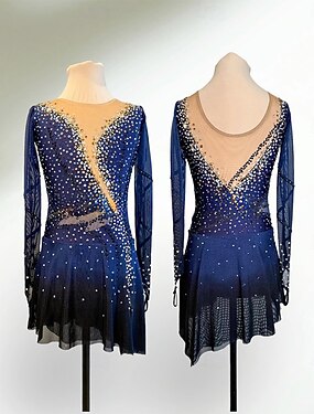 Abito da pattinaggio artistico Per donna Ragazze Pattinaggio sul ghiaccio Vestito blu navy Patchwork Foro per il pollice Spandex Rete Alta elasticità Allenamento Competizione Vestiti da pattinaggio