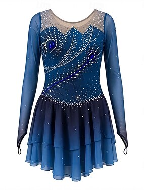 Vestito da pattinaggio artistico Per donna Da ragazza Pattinaggio sul ghiaccio Vestiti Blu scuro Foro per pollice tintura sfumata Retato Elastene Elasticizzato Addestramento Da allenamento