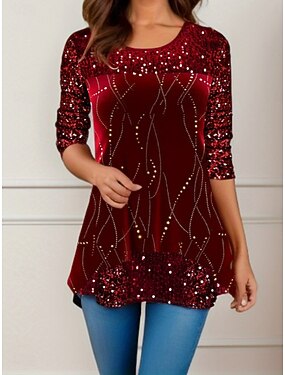 Blusa da donna floreale elegante stilosa casual a maniche lunghe collo rotondo top regolari quotidiani paillettes patchwork stampa argento vino viola fucsia oro primavera autunno inverno