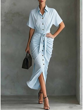 Per donna Abito maxi Abito Camicia Elegante Casual Feste Vestibilità comoda Semplice Manica Corta Colletto a Camicia Blu Nero Rosa Verde Estate Primavera