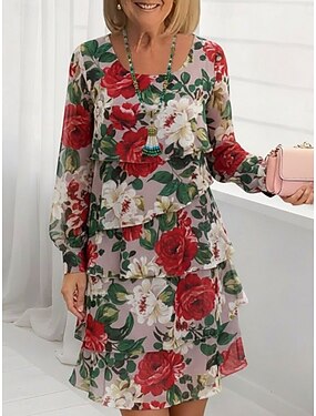 Per donna Mini Abito Abito a Tubino Vestito Casual Vestito in Chiffon Elegante Moda Moderno Quotidiano All'aperto Weekend Vestibilità regolare Floreale Manica Lunga Girocollo Verde Estate Primavera