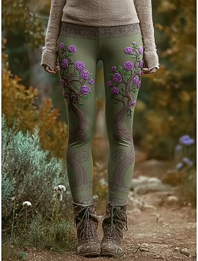 Per donna Leggings Leggings comodi Vacanza Casual Lunghezza intera Vita Alta Floreale Grafico Stampa Confortevole Alta elasticità Casuale Quotidiano All'aperto Verde scuro Fuschia Viola Verde