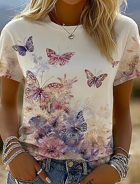 Per donna Maglietta Stampato Floreale Grafico Moda Elegante Classico Manica Corta Girocollo Top Regolari Casuale Quotidiano Weekend Blu Rosa Viola Verde Estate Primavera