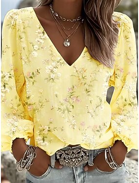 Per donna Camicia Floreale Grafico Elegante Vacanza Tropicale Manica Lunga Scollo a V Top Regolari Casuale Quotidiano Ferie Corallo Rosso Giallo Verde chiaro Rosa Azzurro cielo Estate Primavera