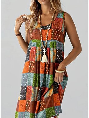 Per donna Mini abito Abito Boho Vestito Casual Vestito Canotta Vintage africano Quotidiano Vacanza Uscire Vestibilità regolare Geometrico Blocco di colori Senza Maniche Girocollo Arcobaleno Primavera