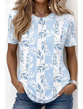 Per donna Maglietta Stampato Ombre Floreale Grafico Elegante Classico Casual Manica Corta Girocollo Top Regolari Casuale Quotidiano Blu Viola chiaro Azzurro Estate Primavera Autunno