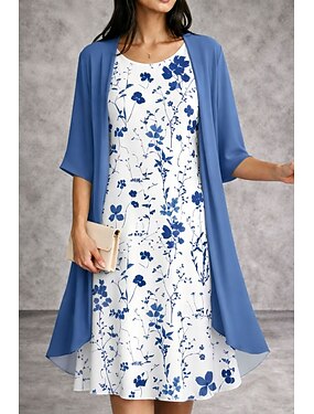 Per donna Insieme del vestito Abito a trapezio Elegante Vacanza Floreale Grafico Stratificato Stampato Abito Midi Mezza Manica Girocollo Quotidiano Vacanza Blu Rosa Verde Estate Primavera Vestibilit