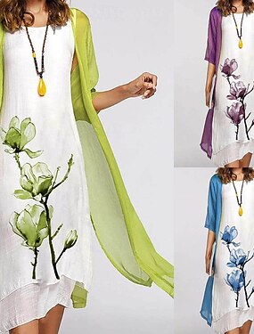 Per donna Abito Midi Vestito Casual Abito Estivo Moda Moderno Quotidiano Spiaggia Weekend Vestibilità regolare Fiore Mezza Manica Girocollo Nero Viola Verde Primavera Autunno