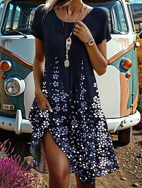 Per donna Mini Abito Vestito Estivo Vestito Casual Vestito T-Shirt Abito a trapezio Elegante Casual Spiaggia Ferie Vestibilità regolare Ombre Floreale Grafico Manica Corta Girocollo Scollo Tondo Blu