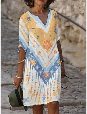 Per donna Abito Midi Vestito Casual Abito Stampato Moda Moderno Quotidiano Spiaggia Weekend Vestibilità regolare Grafico Manica 3/4 Girocollo Giallo Arancione Estate Primavera Autunno
