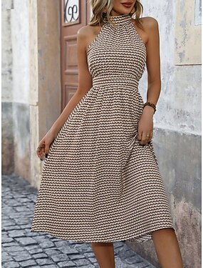 Per donna Abito Midi Abito a trapezio Vacanza Casual All'aperto Uscire Vestibilità standard Geometrico Senza Maniche All'americana Cachi Estate Primavera