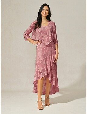 Per donna Abito maxi Abito con balze Elegante Quotidiano Vacanza Ospite di nozze Pizzo Stratificato Vestibilità regolare Floreale Senza Maniche Girocollo Rosa polverosa
