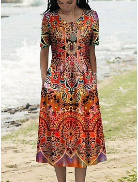 Abito da Festa A-Line di Lunghezza Tea Abito da Cocktail Abito per Ospiti di Nozze Abito per Madre della Sposa Mezza Manica Collo a V Elegante Vintage Festa con Pieghe