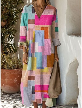 Per donna Abito Midi Vestito Estivo Vestito Casual Abito a trapezio Vacanza Casual Boho Spiaggia Feste Ferie Vestibilità comoda Grafico Geometrico Manica Lunga Scollo a V Blu Rosa Arancione Estate